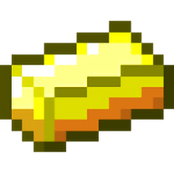 A gold ingot, as it appears in Minecraft.